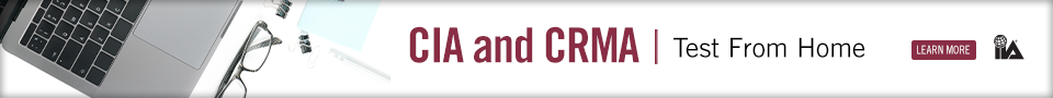 Por tiempo limitado, puede tomar el examen Certified Internal Auditor® (CIA®) y Certification in Risk Management Assurance® (CRMA®) desde su hogar, de manera segura y conveniente. Para respaldar el desarrollo profesional continuo de los candidatos de certificación en todo el mundo y en respuesta a los cierres masivos de centros de pruebas Pearson VUE debido a COVID-19, el IIA ha adoptado pruebas en línea para permitir que los candidatos tomen el CCertified Internal Auditor® (CIA®), Certification in Risk Management Assurance®️ (CRMA®️), y CIA Challenge desde casa. Esta opción de prueba flexible estará disponible por un tiempo limitado.