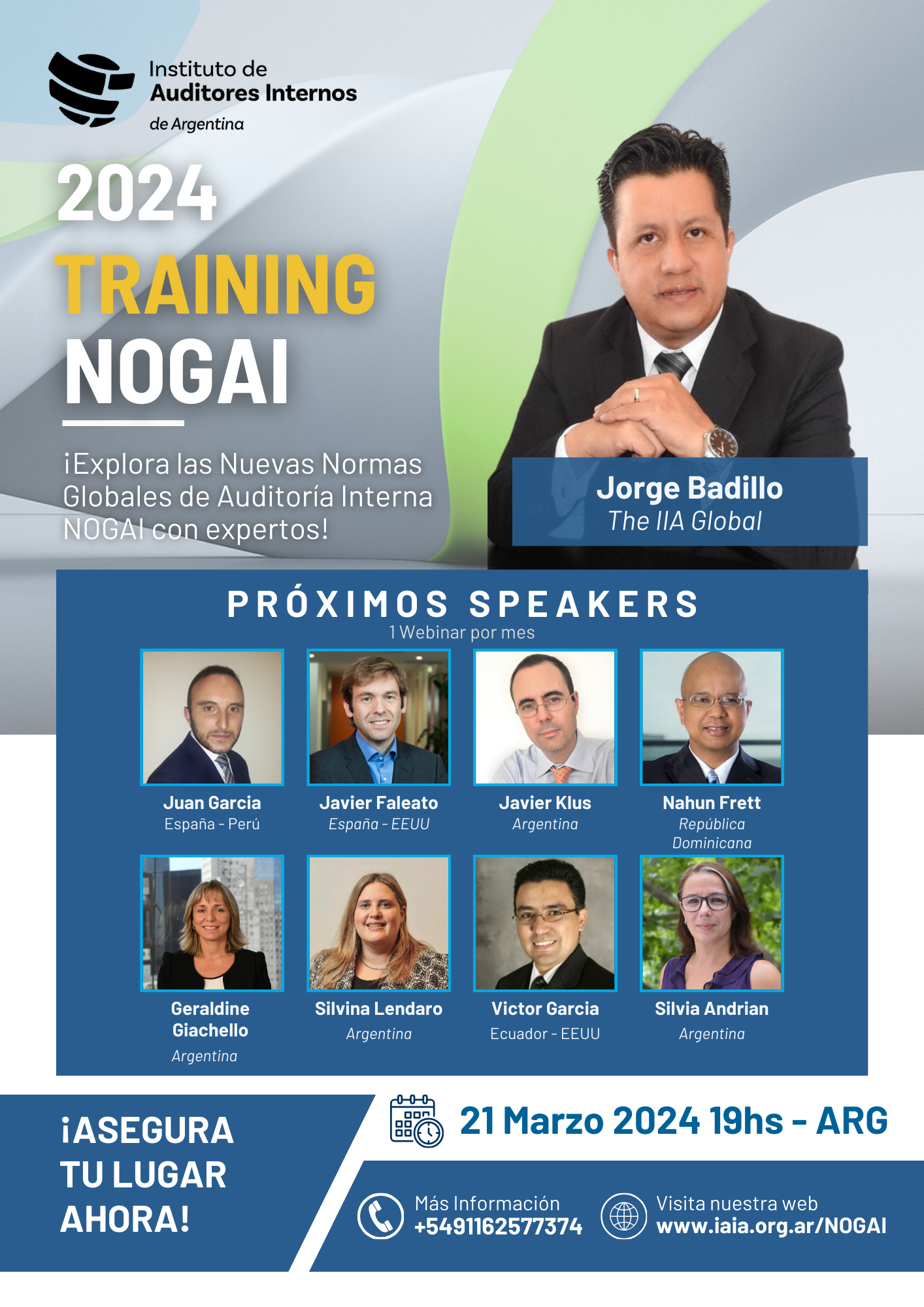 Comenzamos con la presentación en el mes de marzo de Jorge Badillo del IIA Global, y en los meses siguientes contaremos con las ponencias de Juan García, Javier Faleato, Javier Klus, Nahun Frett, Geraldine Giachello, Juan Garcia, Silvina Lendaro, Víctor García y Silvia Andrian.