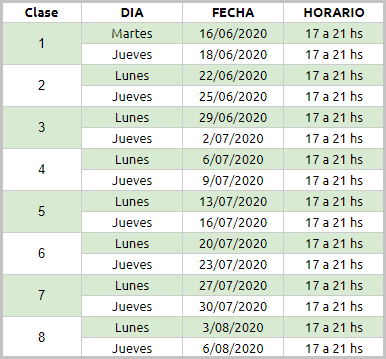 Próximo dictado: Comienza martes 16 de junio de 2020.
